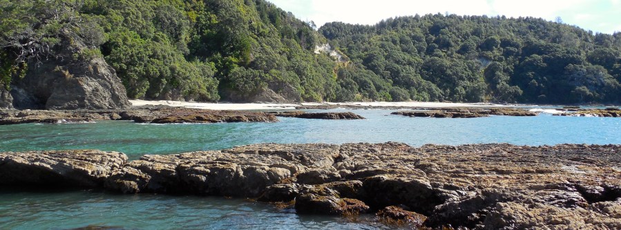 Otatawaiere Cove with the bush clad hills of Whakatane behind it